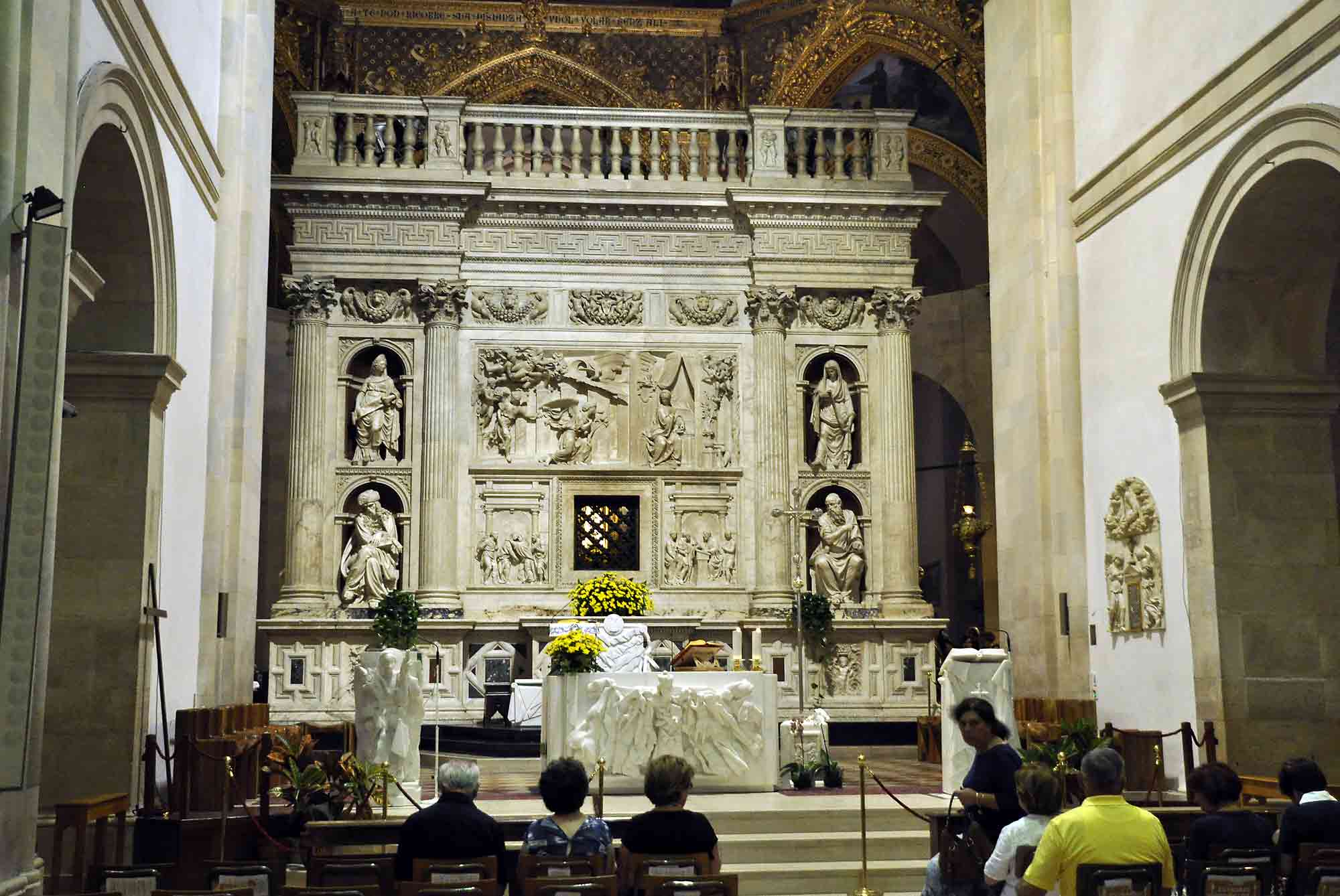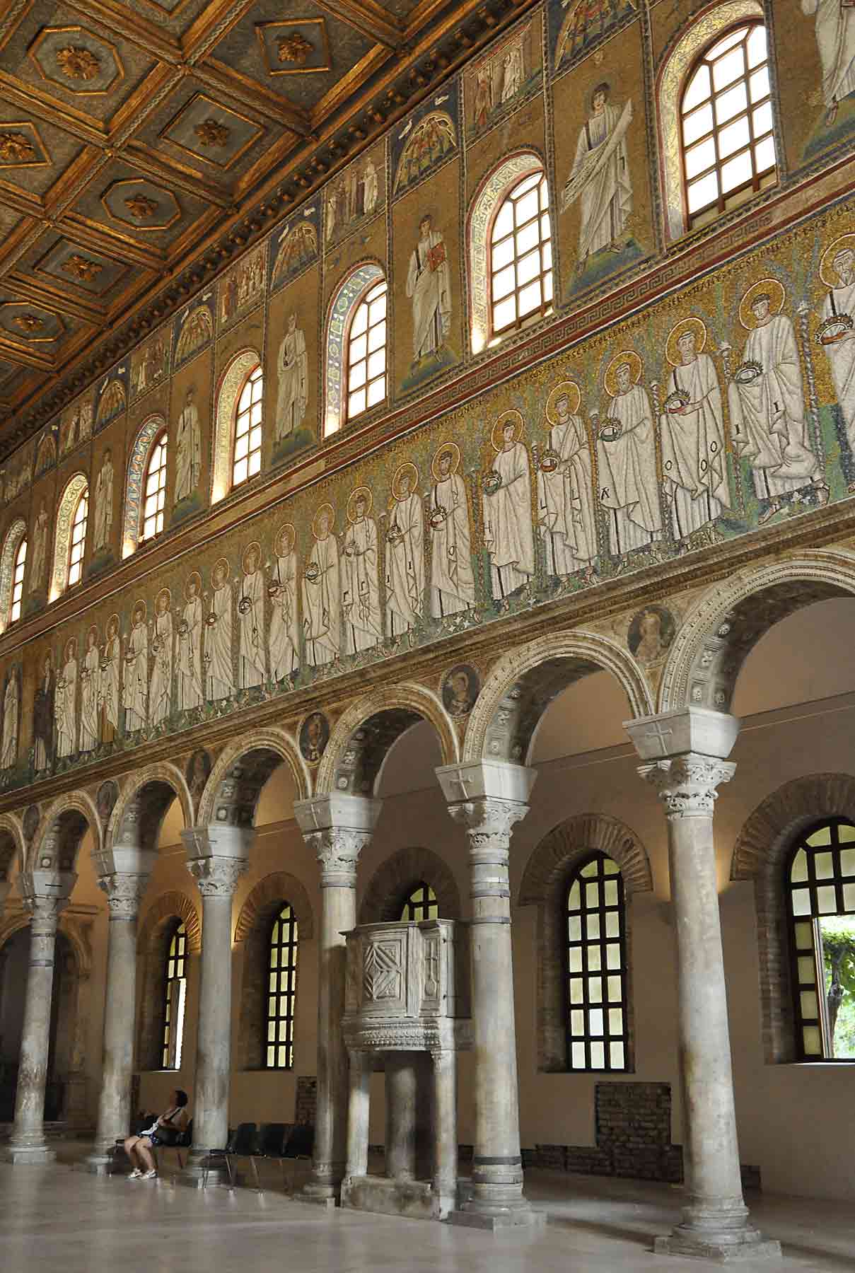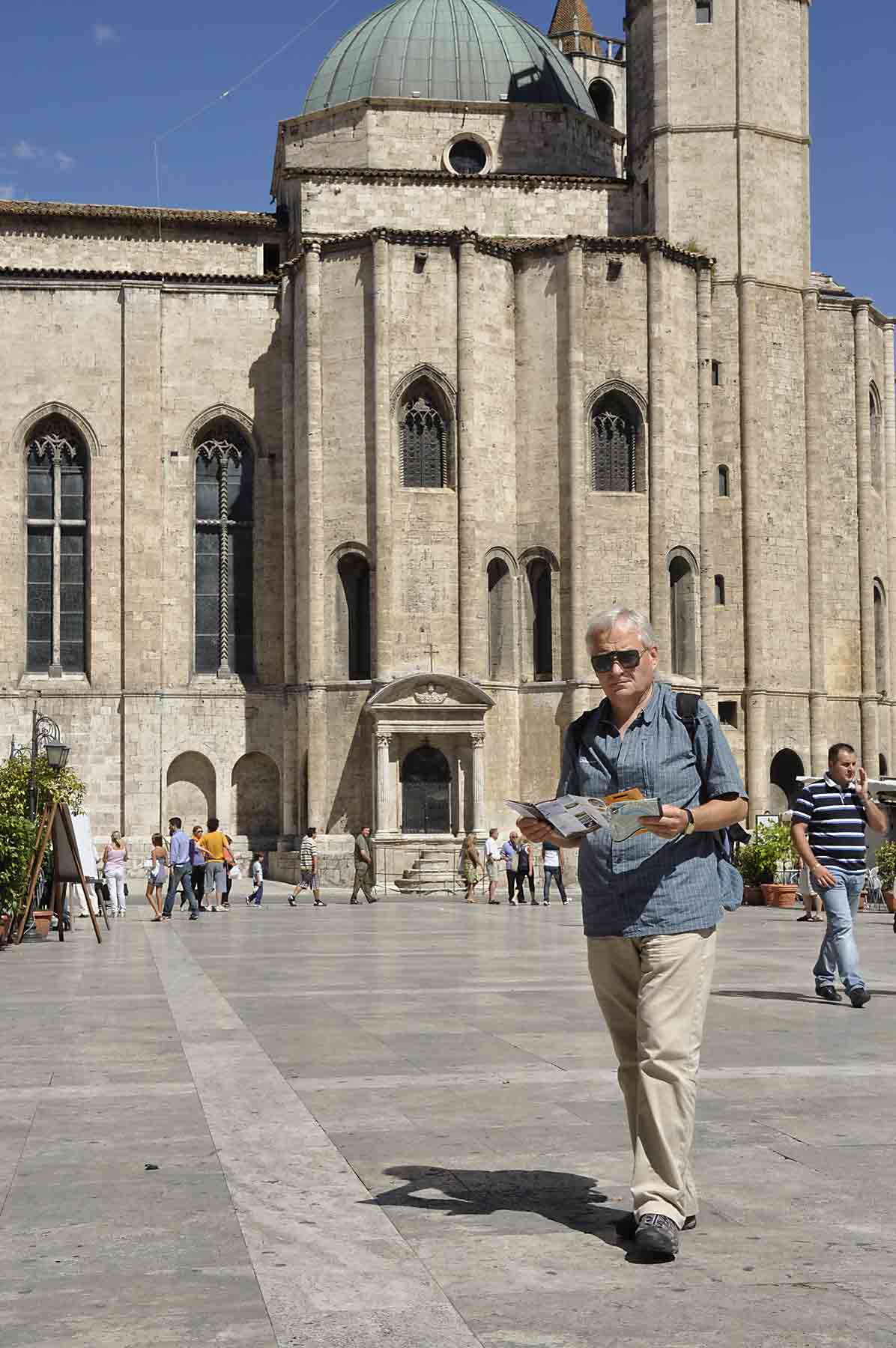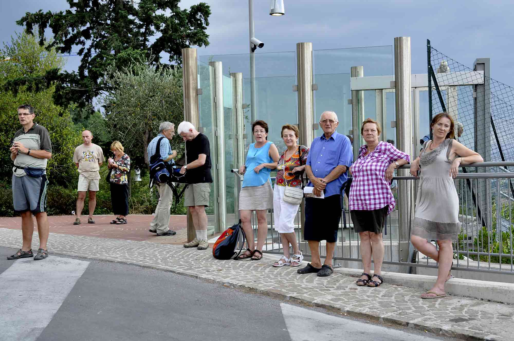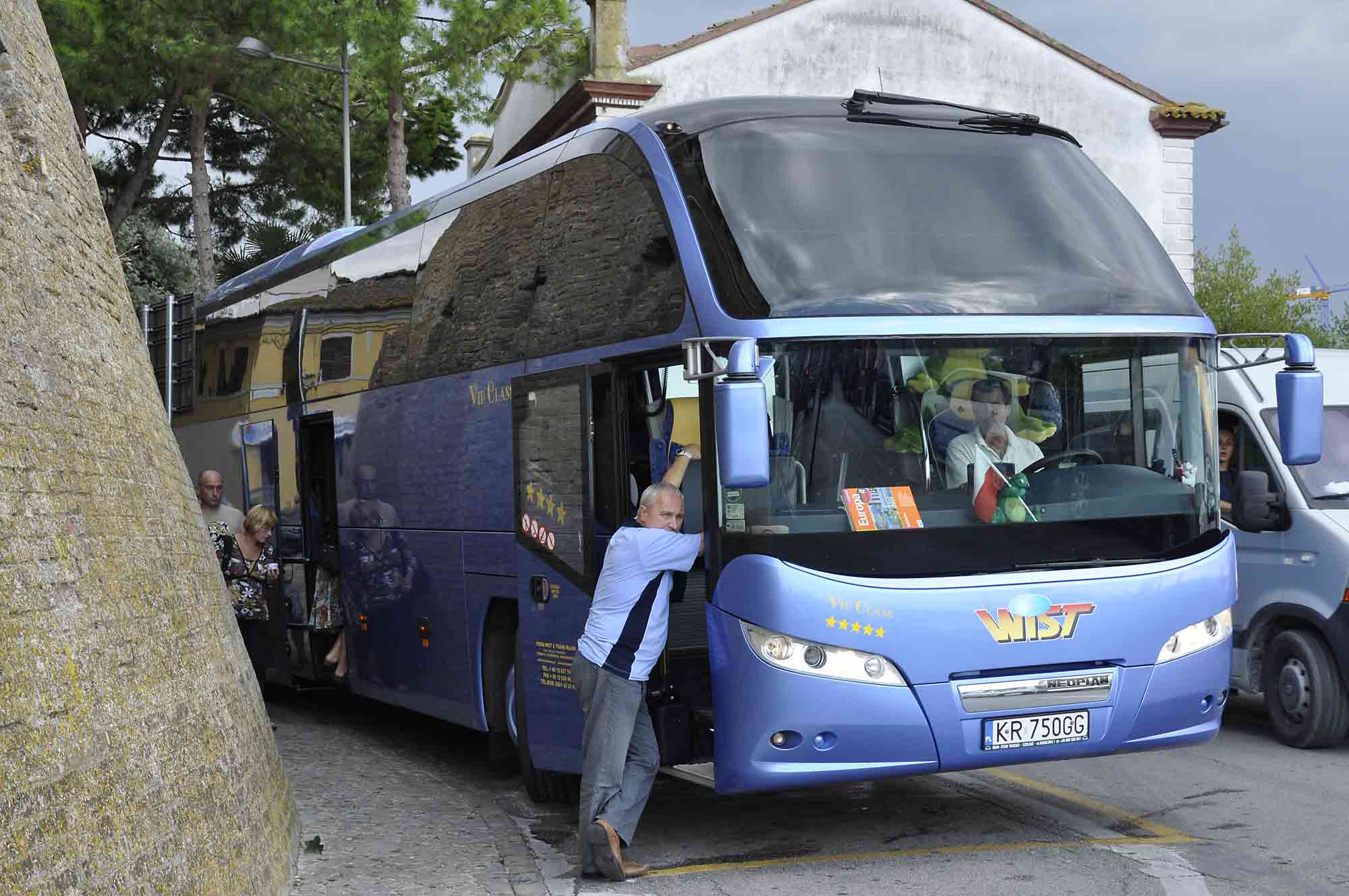 W tym roku poszło już lepiej i 26 sierpnia wieczorem nasza 33 osobowa grupa wyruszyła niebieskim autobusem w podróż. Pojazd chyżo pomykał, toteż do Rawenny dotarliśmy już wczesnym popołudniem następnego dnia. Dało to czas najpierw na zbiorowe odwiedziny w bazylice S. Apollinare in Classe, a następnie zwiedzanie w podgrupach, do wieczora. Pół dnia to na Rawennę za mało, więc kontynuowaliśmy zwiedzanie w sobotę do południa, po czym wyruszyliśmy w dalszą drogę. Kolejnym punktem było, położone już w Apeninach i regionie Marche, Urbino – miasto księcia Federigo da Montefeltro i Rafaela. Potem jeszcze krótka wizyta w Loreto i jazda na kemping położony nieopodal miasteczka Sarnano, u podnóża Gór Sybillińskich. Okazało się, że nasz autobus jest za duży aby wjechać na kemping, lecz uprzejmy gospodarz podwiózł nam bagaże pod położone kilkaset metrów dalej domki.