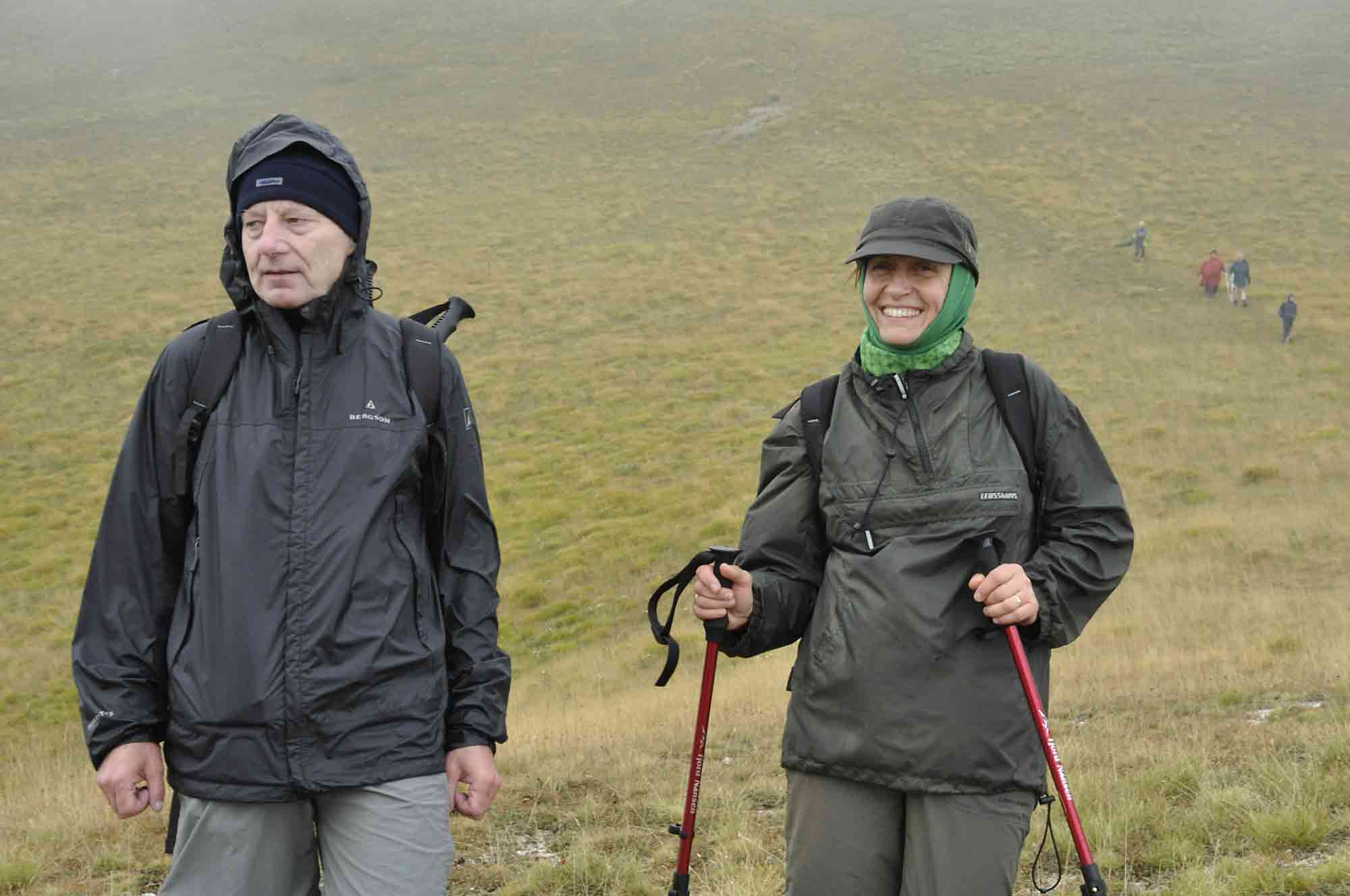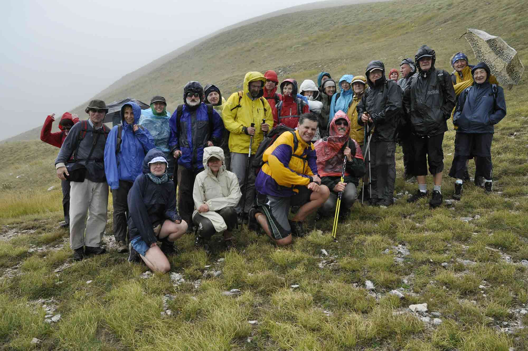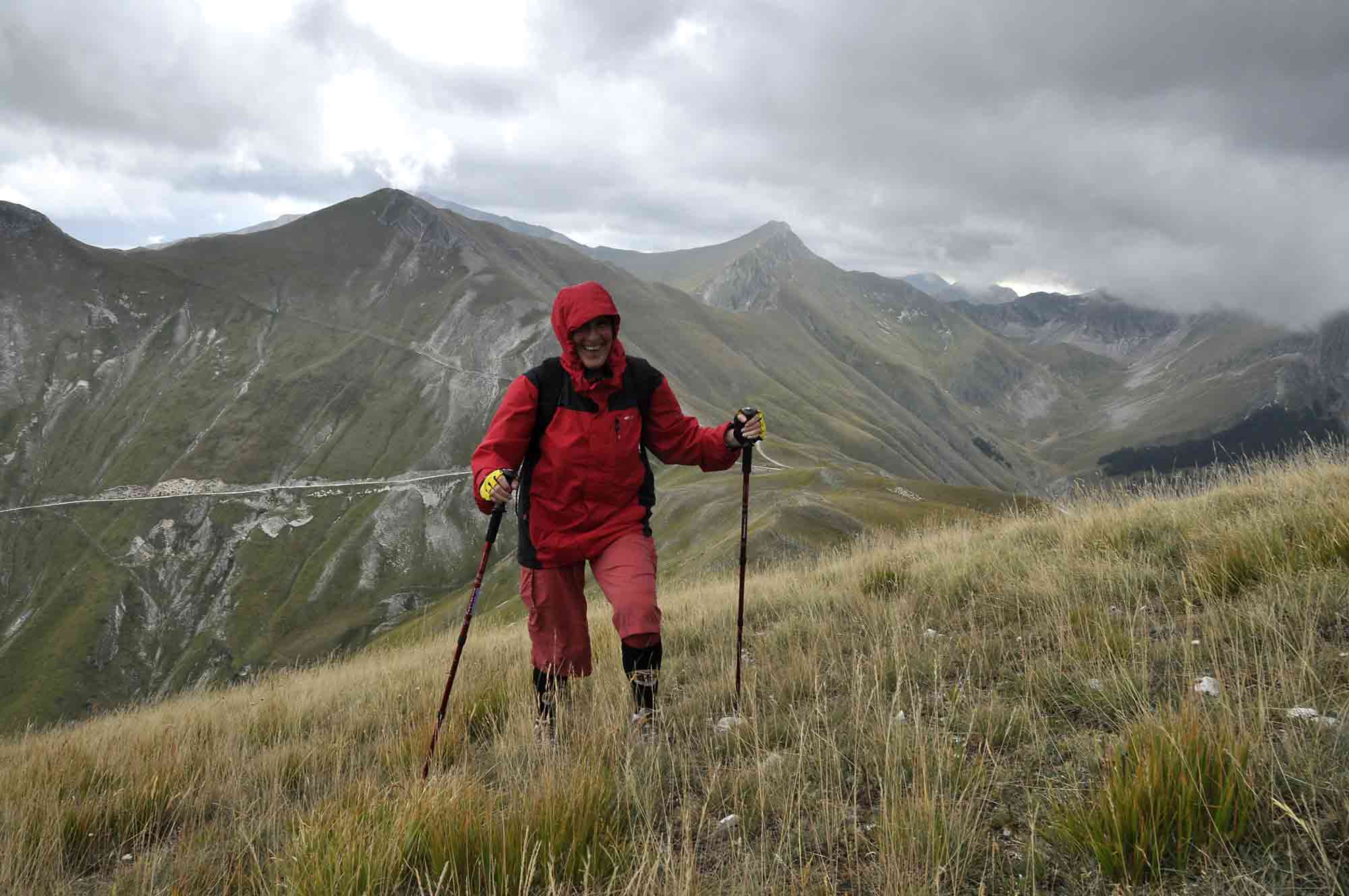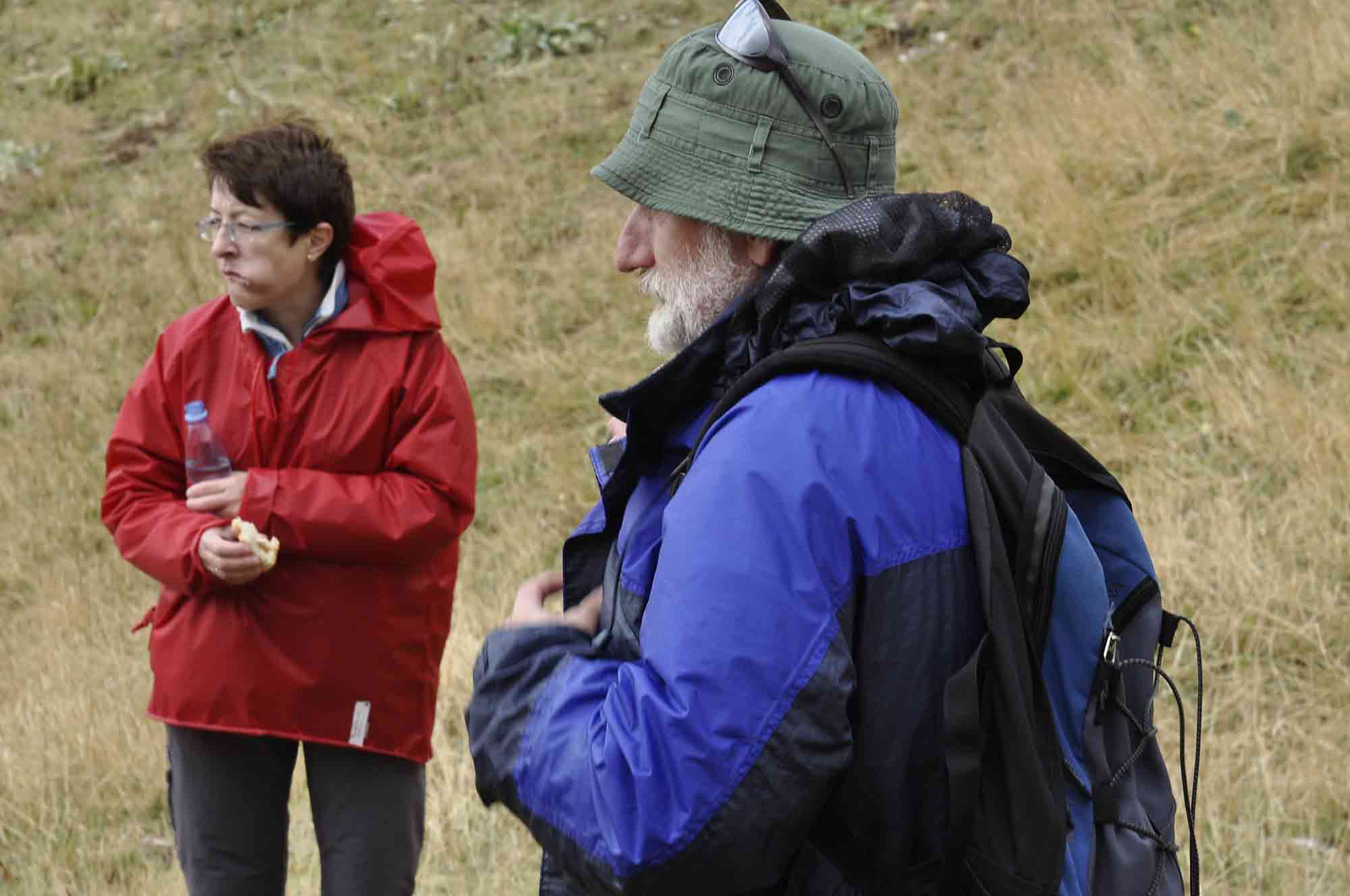 Doświadczenie z objazdu pokazało, że na krętych i wąskich górskich drogach poruszamy się dość powoli. Wobec tego w poniedziałek nie jechaliśmy nigdzie daleko, tylko znowu tą samą drogą na grzbiet, do miejsca zwanego Pintura di Bolognola (ok. 1400 m), skąd wyruszyliśmy na górską wycieczkę na Monte Rotondo (2102 m), z początku pogoda była całkiem ładna, ale wiał b. silny wiatr – a jak wieje, to wiadomo, że coś przywieje. Tak się też stało, już niedaleko szczytu znaleźliśmy się w chmurach i zaczął padać deszcz. Dobrze, że potem pogoda się poprawiła, bo szlak, którym szliśmy był dość kiepsko oznakowany i we mgle mógłby nastręczyć duże trudności. Już nawet znacznie podeschliśmy, gdy na ok. 6 km przed miejscem gdzie czekał nasz autobus, upusty rozwarły się znowu, tym razem na dobre! Przemoczeni na wskroś dotarliśmy do szosy. Kiedy chciałem wezwać autobus, żeby po nas podjechał, okazało się, że nie mam numeru do kierowcy – w jakiś sposób skasował się z komórki! Pozostawało iść jeszcze ze 3 km drogą. W desperacji zacząłem machać na nadjeżdżający samochód, który ku mojemu zdziwieniu zatrzymał się, a uprzejmy kierowca, Anglik mieszkający we Włoszech, podwiózł mnie do autobusu.