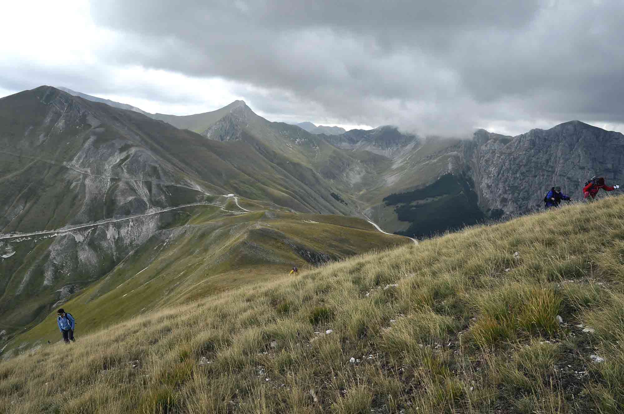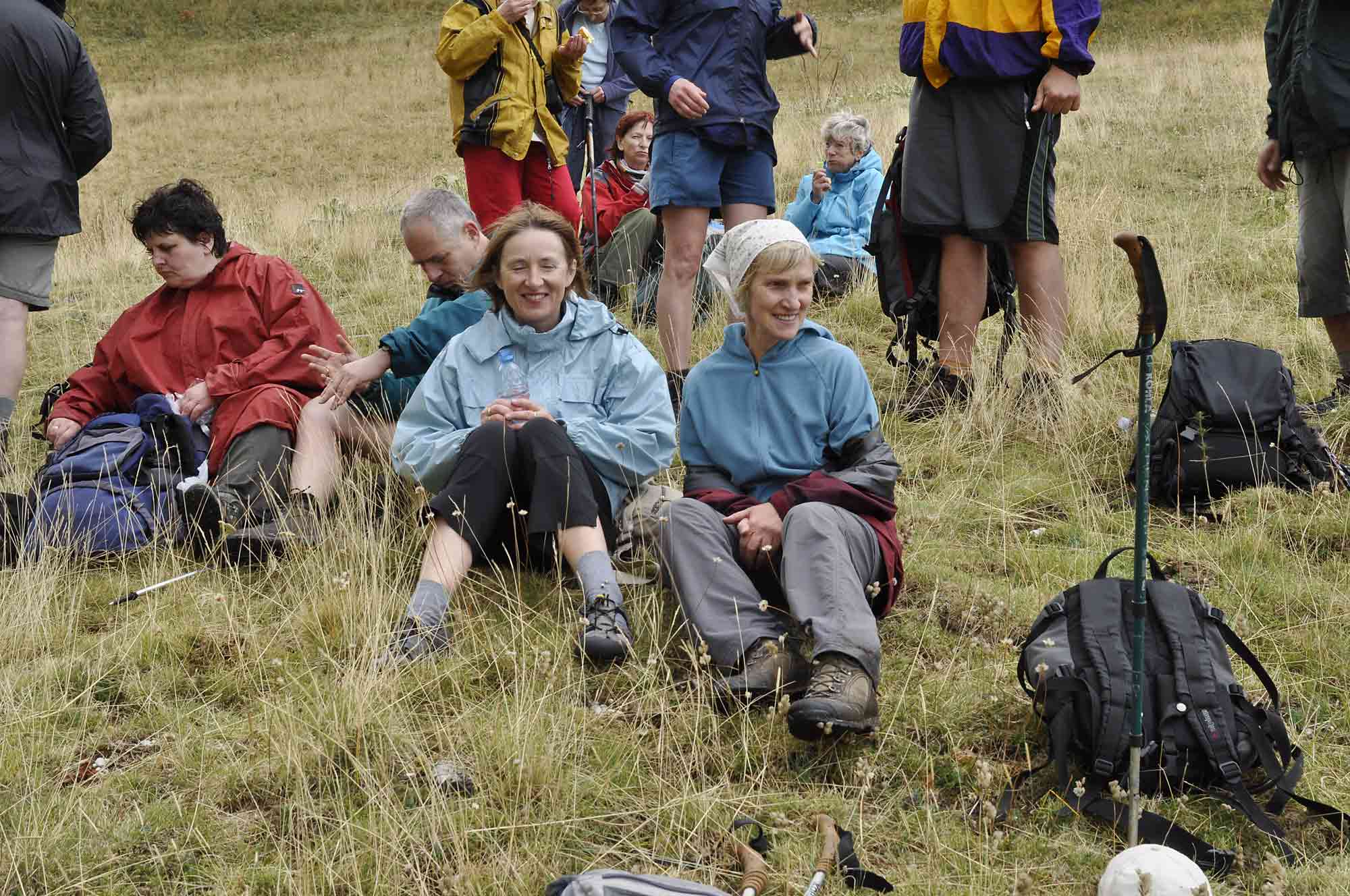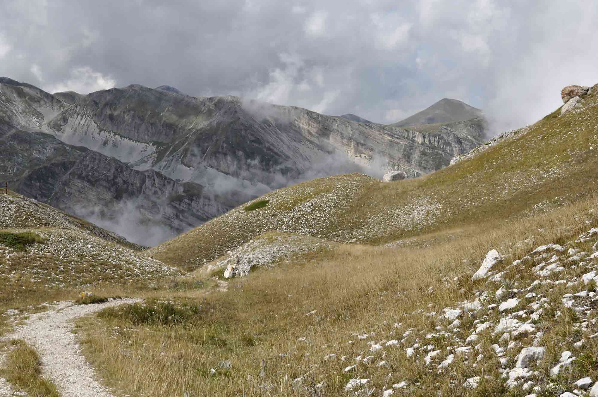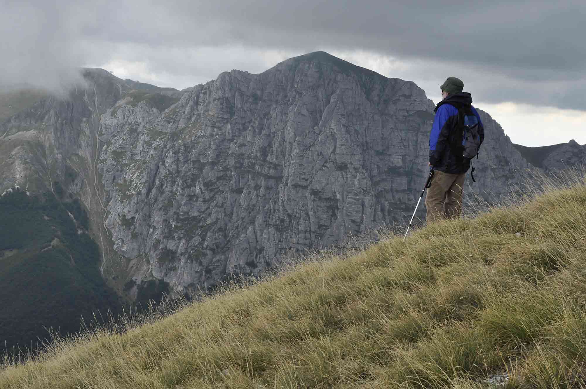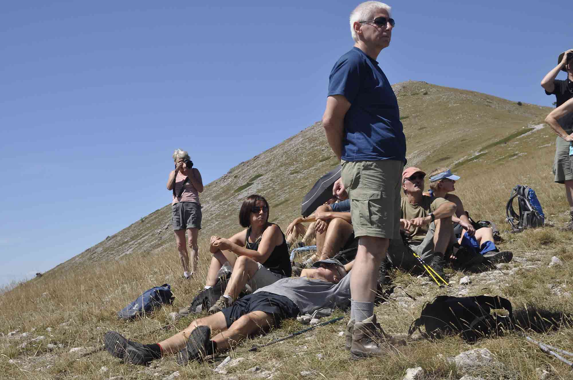 Doświadczenie z objazdu pokazało, że na krętych i wąskich górskich drogach poruszamy się dość powoli. Wobec tego w poniedziałek nie jechaliśmy nigdzie daleko, tylko znowu tą samą drogą na grzbiet, do miejsca zwanego Pintura di Bolognola (ok. 1400 m), skąd wyruszyliśmy na górską wycieczkę na Monte Rotondo (2102 m), z początku pogoda była całkiem ładna, ale wiał b. silny wiatr – a jak wieje, to wiadomo, że coś przywieje. Tak się też stało, już niedaleko szczytu znaleźliśmy się w chmurach i zaczął padać deszcz. Dobrze, że potem pogoda się poprawiła, bo szlak, którym szliśmy był dość kiepsko oznakowany i we mgle mógłby nastręczyć duże trudności. Już nawet znacznie podeschliśmy, gdy na ok. 6 km przed miejscem gdzie czekał nasz autobus, upusty rozwarły się znowu, tym razem na dobre! Przemoczeni na wskroś dotarliśmy do szosy. Kiedy chciałem wezwać autobus, żeby po nas podjechał, okazało się, że nie mam numeru do kierowcy – w jakiś sposób skasował się z komórki! Pozostawało iść jeszcze ze 3 km drogą. W desperacji zacząłem machać na nadjeżdżający samochód, który ku mojemu zdziwieniu zatrzymał się, a uprzejmy kierowca, Anglik mieszkający we Włoszech, podwiózł mnie do autobusu.