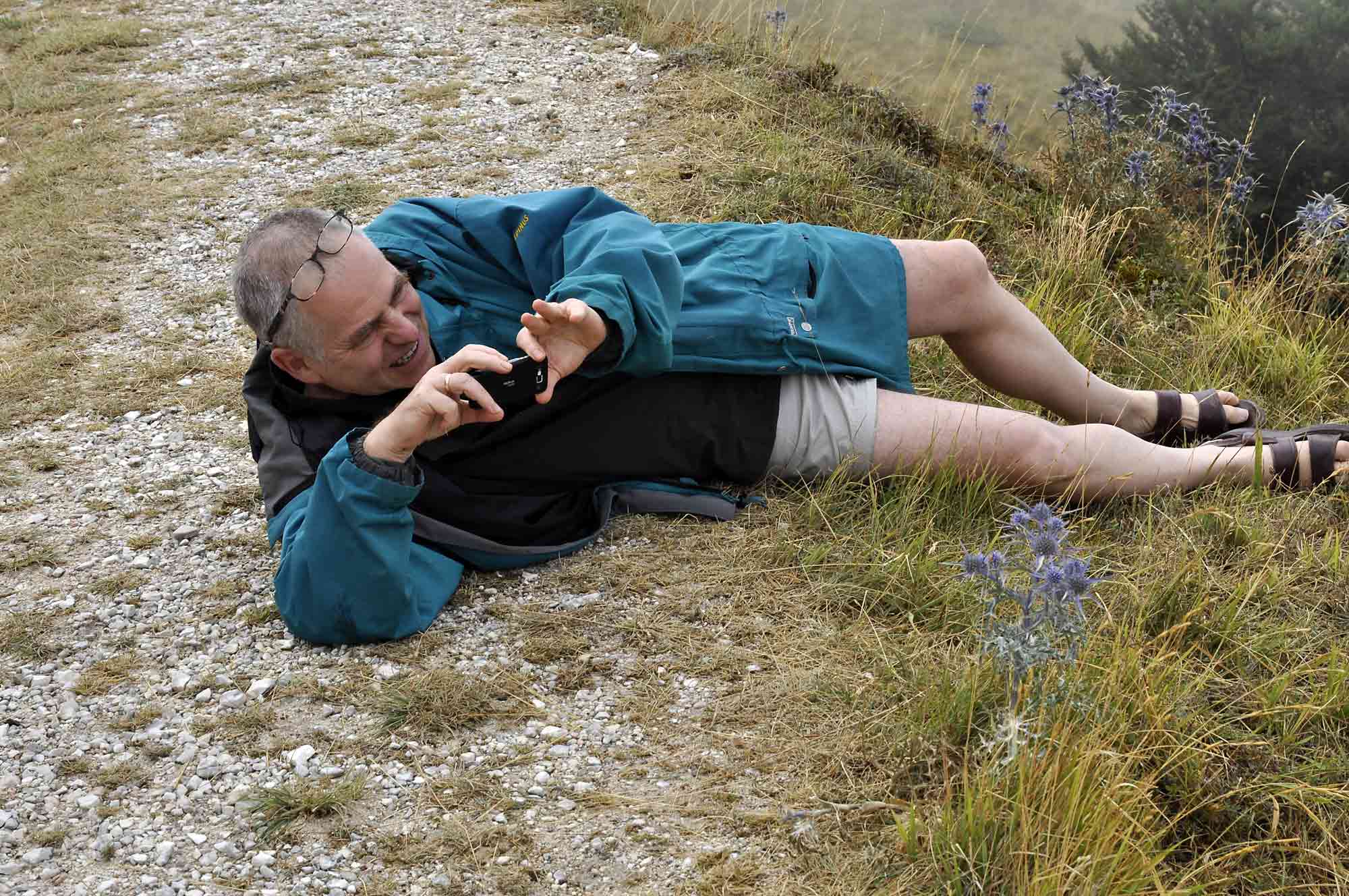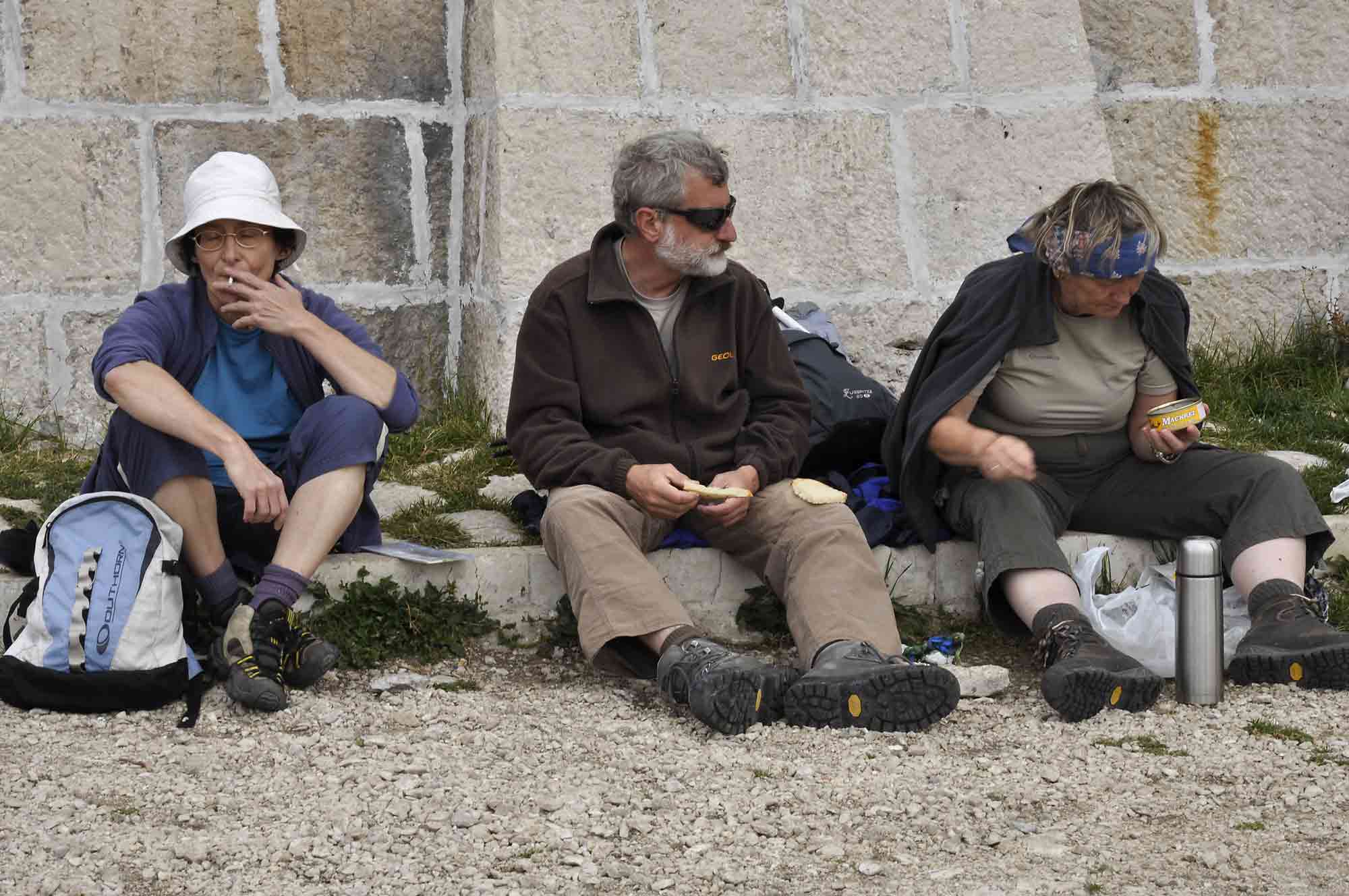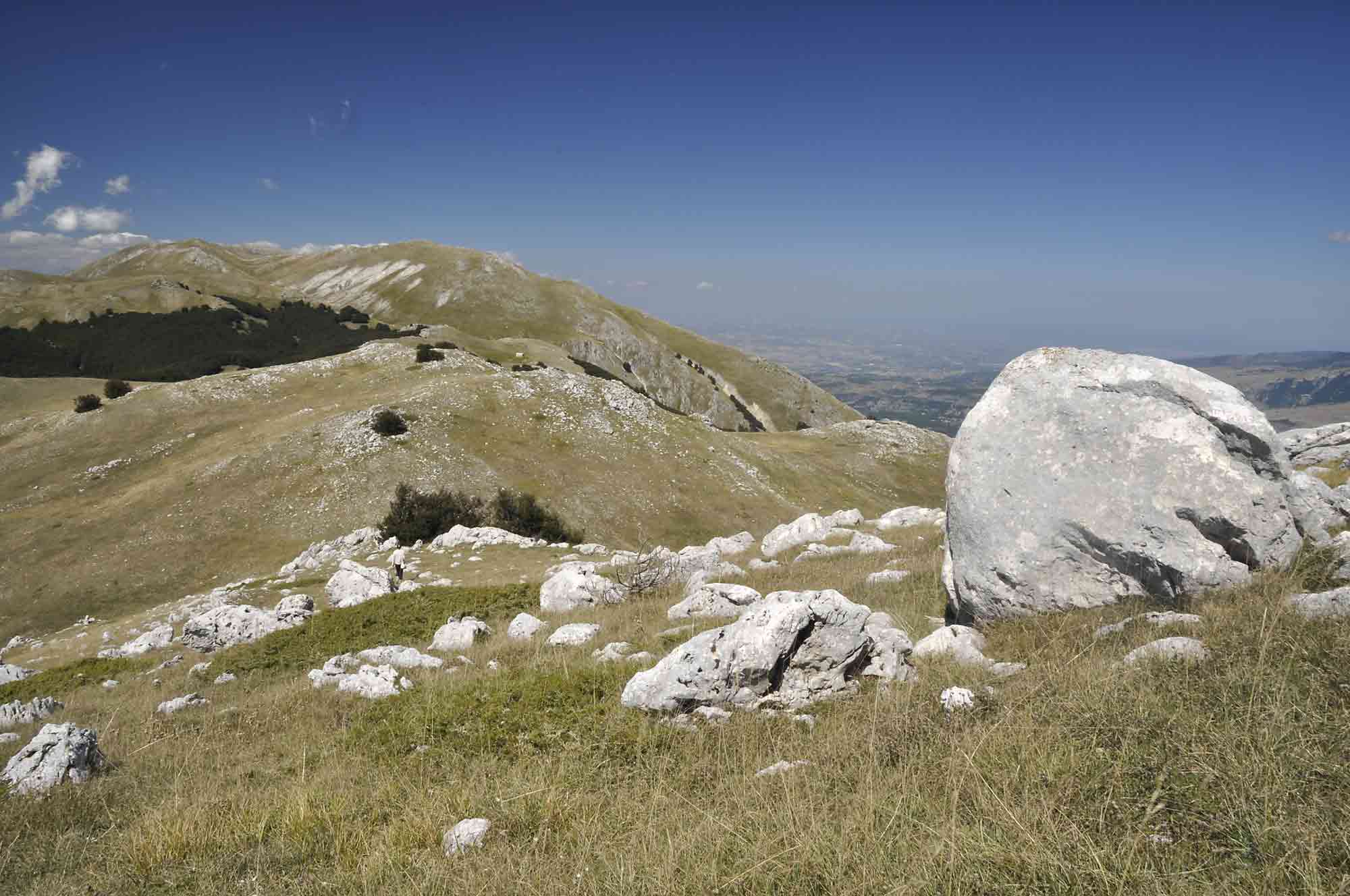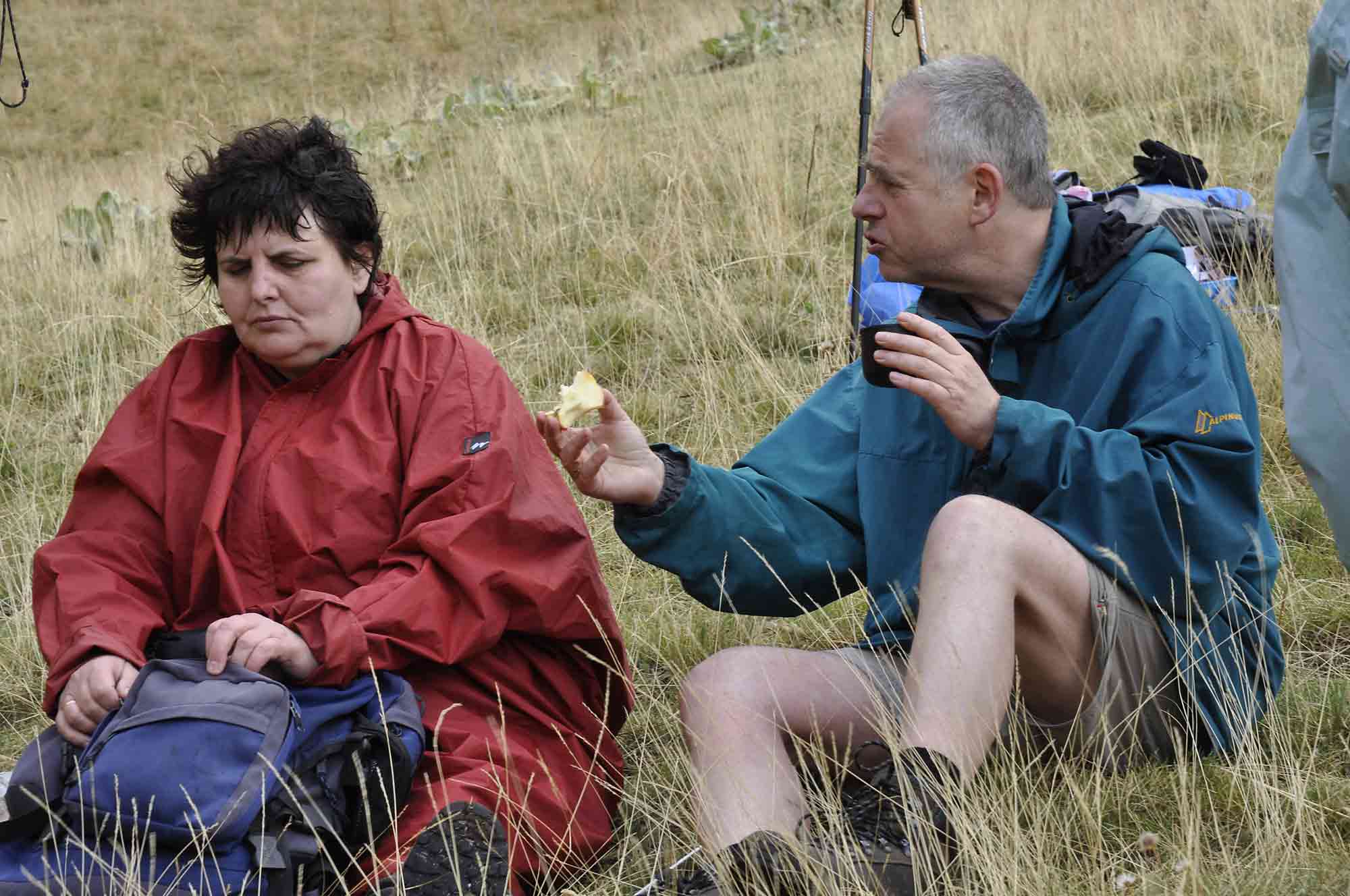 Doświadczenie z objazdu pokazało, że na krętych i wąskich górskich drogach poruszamy się dość powoli. Wobec tego w poniedziałek nie jechaliśmy nigdzie daleko, tylko znowu tą samą drogą na grzbiet, do miejsca zwanego Pintura di Bolognola (ok. 1400 m), skąd wyruszyliśmy na górską wycieczkę na Monte Rotondo (2102 m), z początku pogoda była całkiem ładna, ale wiał b. silny wiatr – a jak wieje, to wiadomo, że coś przywieje. Tak się też stało, już niedaleko szczytu znaleźliśmy się w chmurach i zaczął padać deszcz. Dobrze, że potem pogoda się poprawiła, bo szlak, którym szliśmy był dość kiepsko oznakowany i we mgle mógłby nastręczyć duże trudności. Już nawet znacznie podeschliśmy, gdy na ok. 6 km przed miejscem gdzie czekał nasz autobus, upusty rozwarły się znowu, tym razem na dobre! Przemoczeni na wskroś dotarliśmy do szosy. Kiedy chciałem wezwać autobus, żeby po nas podjechał, okazało się, że nie mam numeru do kierowcy – w jakiś sposób skasował się z komórki! Pozostawało iść jeszcze ze 3 km drogą. W desperacji zacząłem machać na nadjeżdżający samochód, który ku mojemu zdziwieniu zatrzymał się, a uprzejmy kierowca, Anglik mieszkający we Włoszech, podwiózł mnie do autobusu.