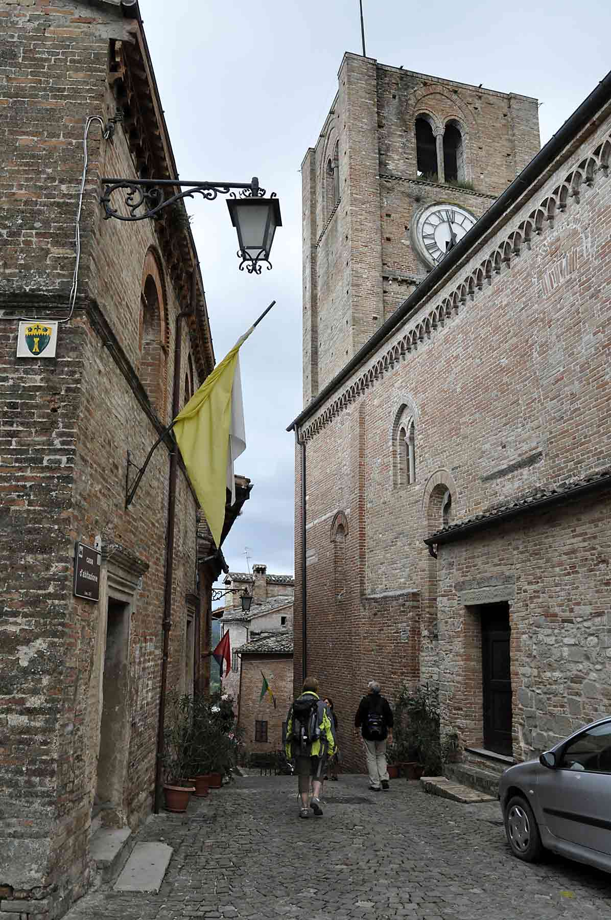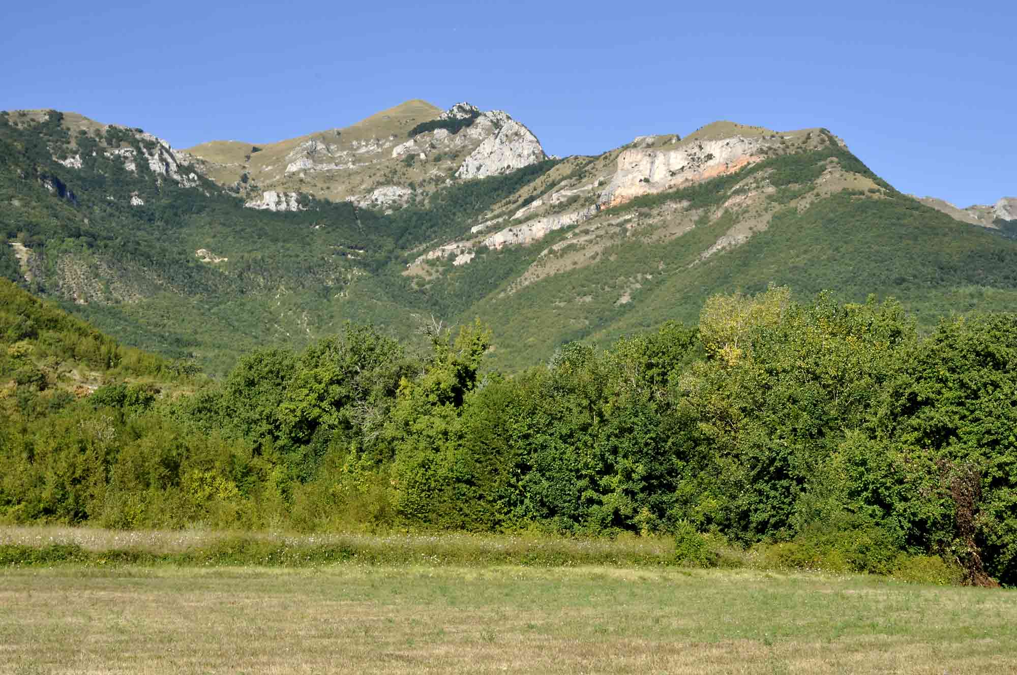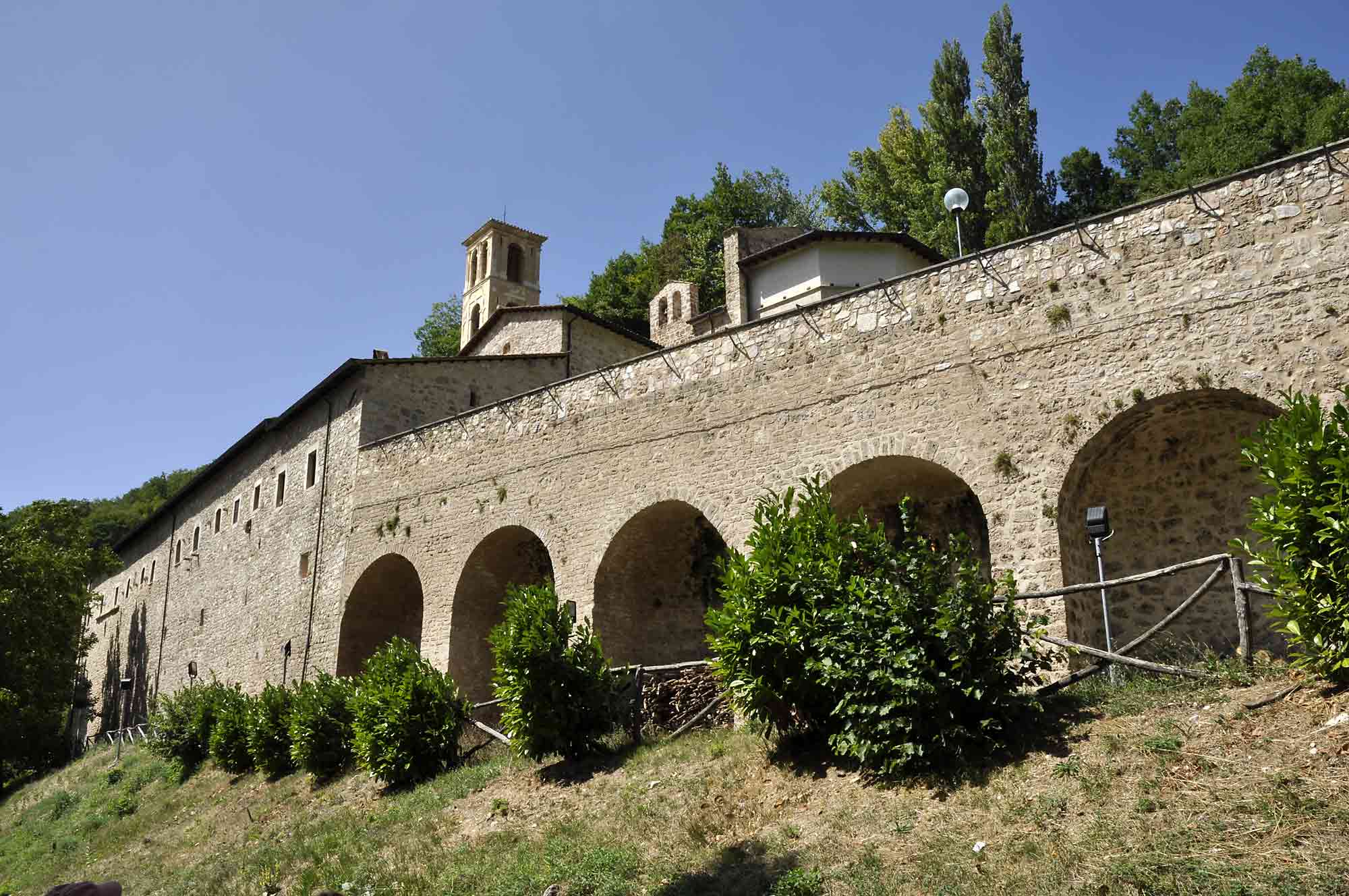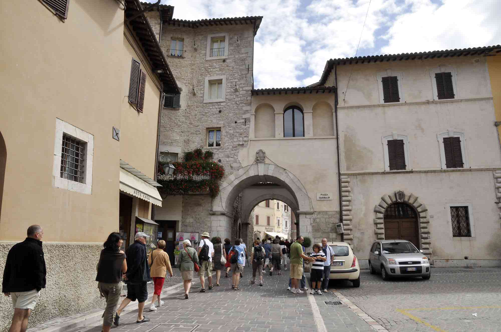 Następnego dnia (niedziela) pogoda była ładna, a w górach nie odczuwało się już takiego upału jak w Rawennie. Wyruszyliśmy autobusem na objazd Gór Sybillińskich. Droga wspięła się najpierw serpentynami na przełęcz s. Maria Maddalena (1515 m), a następnie jeszcze stromiej opadła w dolinę rzeki Fiastrone. Pierwszy dłuższy postój był w Visso, świetnie zachowanym średniowiecznym miasteczku, całym z kamienia, gdzie znajduje się siedziba parku narodowego. Dalej położone na skale opactwo s. Eutizio i Norcia – rodzinne miasto św. Benedykta. Norcia terytorialnie należy do Umbrii, tym samym nawiązaliśmy do poprzedniej wycieczki. Objechaliśmy góry od południa i przez Amandolę wrócili do Sarnano, które okazało się również czarującym miasteczkiem, dla odmiany zbudowanym z cegły.