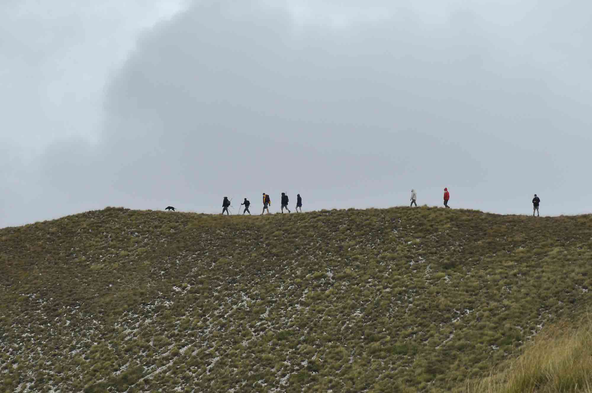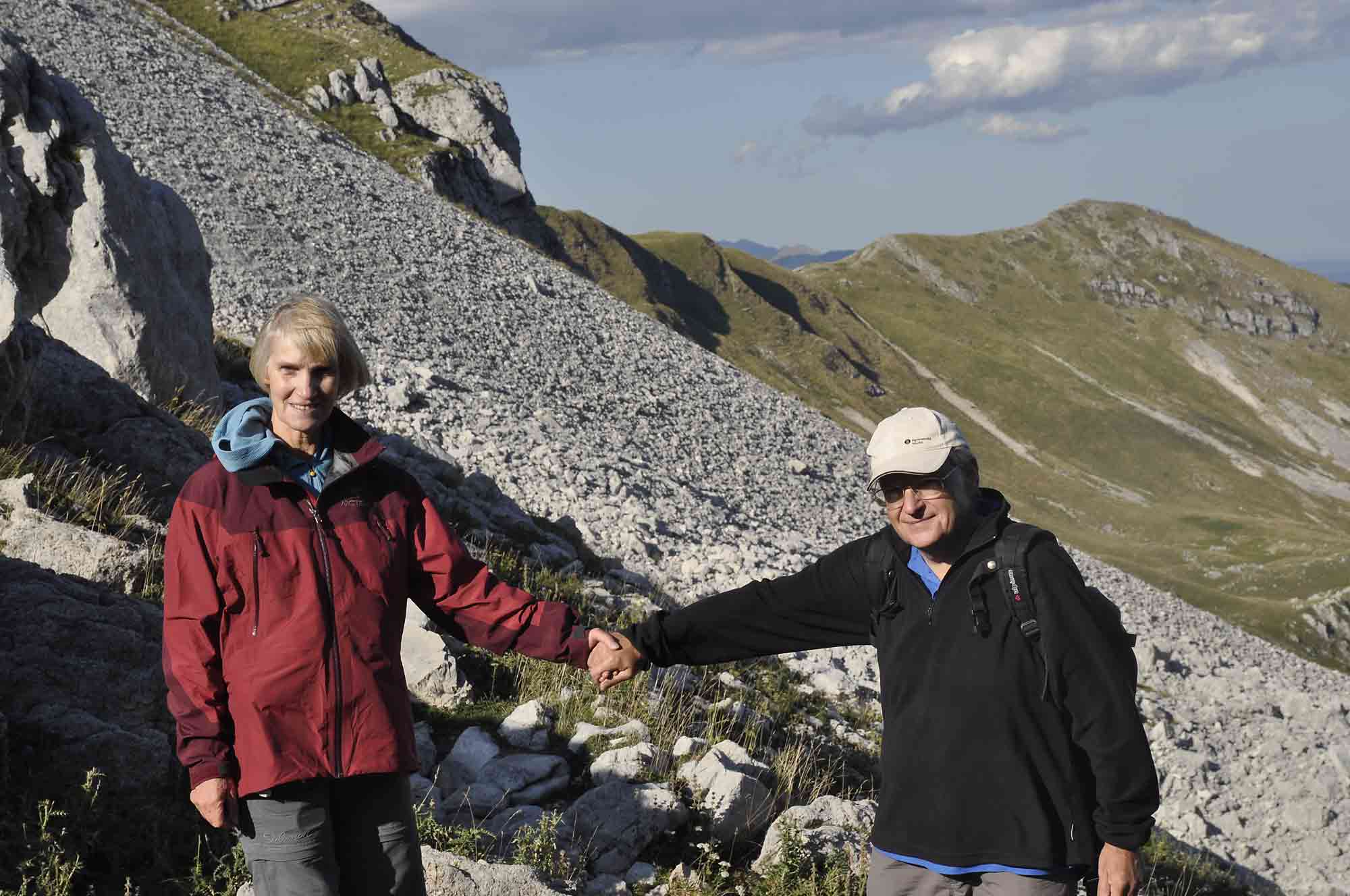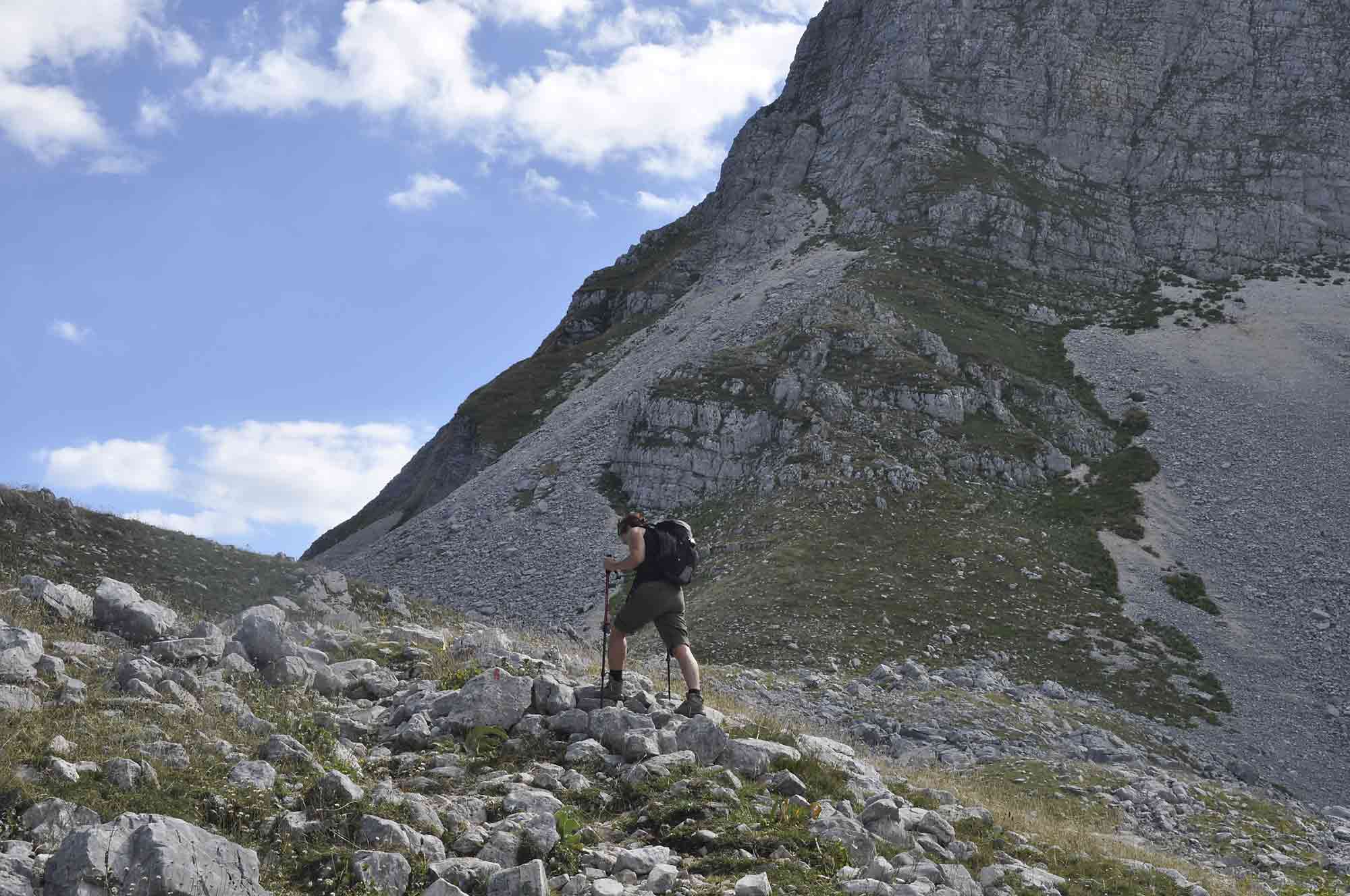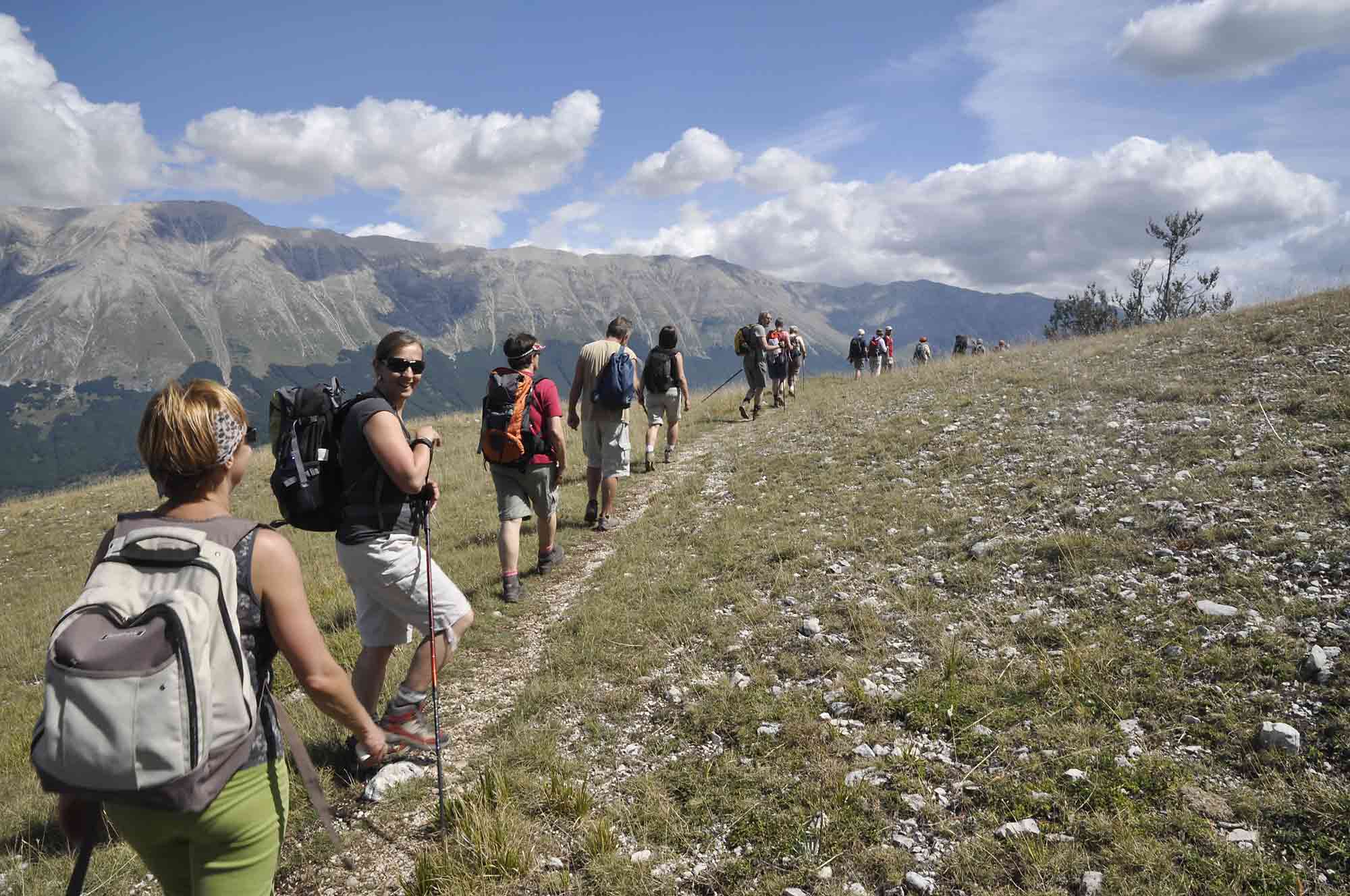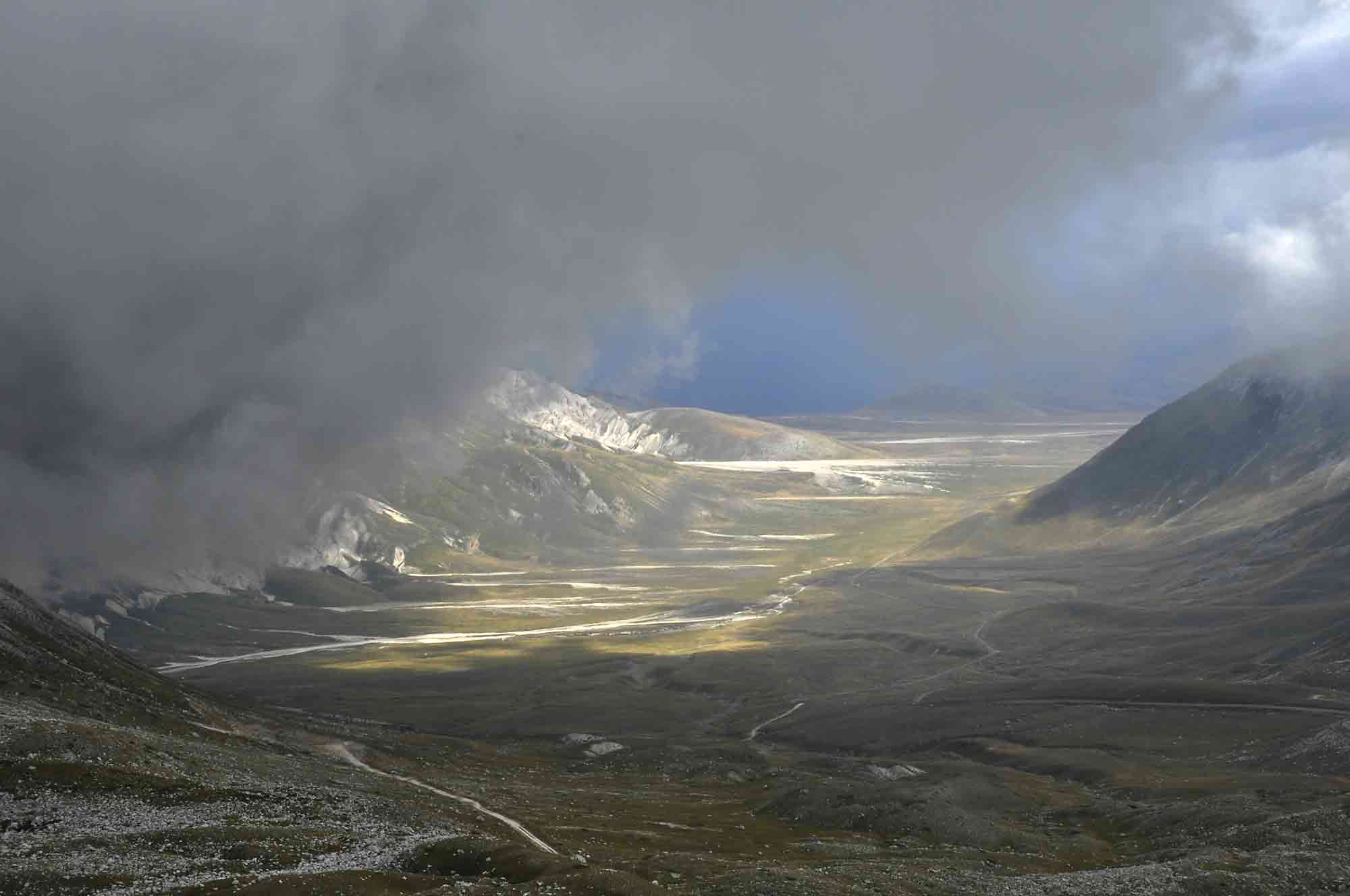Na ostatnią wycieczkę zostawiliśmy sobie najwyższy w Apeninach masyw Gran Sasso – Italia, także objęty ochroną jako park narodowy. Autobusem wyjechaliśmy aż na Campo Imperatore, pod hotel paskudny, ale historyczny, ponieważ był miejscem odosobnienia, a potem porwania Mussoliniego. Ponieważ autobus wjechał na ponad 2000 m, bez kłopotu osiągnęliśmy położone na grani schronisko Duca degli Abruzzi (2388 m), a następnie zrobiliśmy piękną wycieczkę u podnóża Corno Grande, obchodząc dookoła Campo Pericoli.
