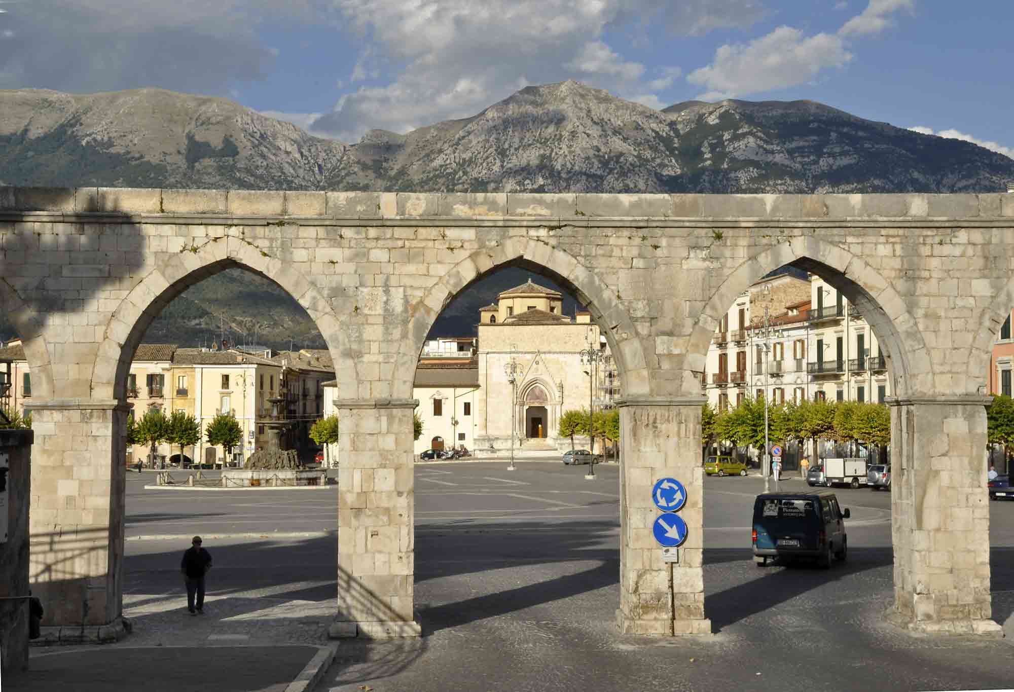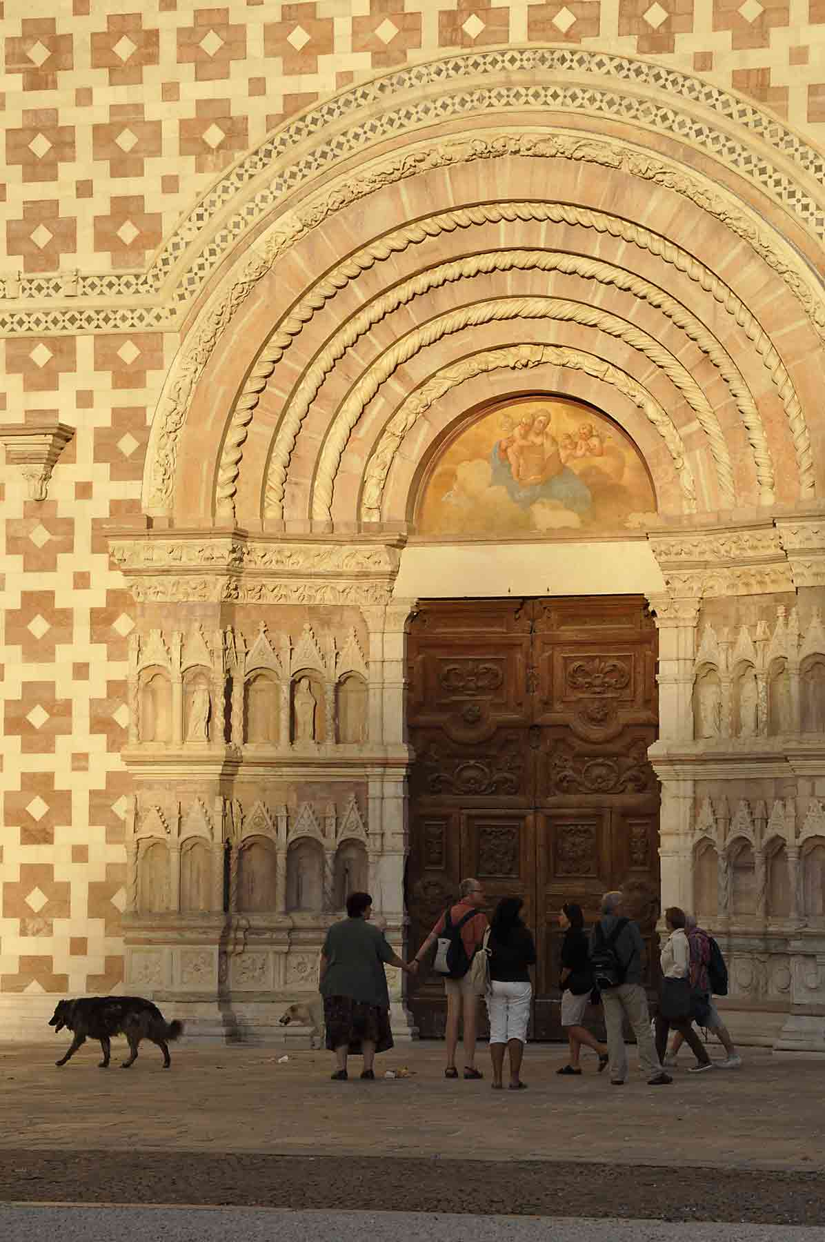 Kolejny dzień to znowu transfer ze zwiedzaniem. Najpierw – leżące jeszcze w Marche, nad rzeką Tronto miasto Ascoli Piceno – z rzymskim mostem i wspaniałymi zabytkami od średniowiecza do baroku; następnie – wąwóz Salinello ( już należący do Parku Narodowego Gran Sasso e Monti della Laga) z pozostałościami jaskiniowej pustelni; wreszcie – Aquila, stolica Abruzji. Wizyta w Aquili, mieście zrujnowanym przez trzęsienie ziemi i w znacznej mierze opustoszałym była ciekawa, ale i przygnębiająca.