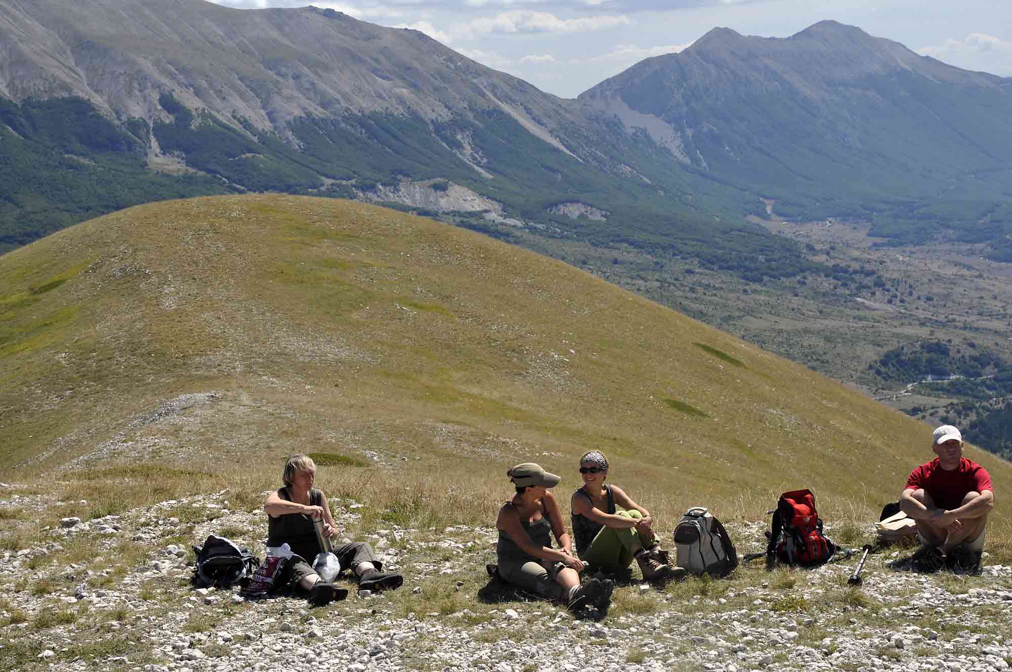 Plan na środę przewidywał wycieczkę do parku narodowego Abruzzo. Śniadaniowo-sklepowa mitręga spowodowała, że wyruszyliśmy autobusem dopiero przed 10-tą, a na początku szlaku, za miasteczkiem Barrea, stanęliśmy ok. 11.30. Po drodze wysiadło 6 osób, które postanowiły zwiedzić urocze Opi i centrum parku – Pescasseroli. Szlak górski prowadził w kierunku szczytu La Meta (2242 m). Przy tak późnym starcie okazało się to jednak za daleko. Osiągnęliśmy tylko przełęcz w grani głównej (Passo dei Monaci, 1967 m) i sąsiednią doliną zeszliśmy na dół. Zejście, przy kontuzjowanych nogach niektórych uczestników, okazało się dość długotrwałe, toteż do autobusu wracaliśmy już po ciemku, pod wspaniale rozgwieżdżonym niebem. Pozostało jeszcze zabrać ludzi, którzy wyczekali się na nas w Pescasseroli. Nie obyło się bez trudności, bo po ciemku mylne oznakowanie dwukrotnie kierowało nas na złą drogę. W końcu dotarliśmy do hotelu zadowoleni z przygód, ale zbyt późno by zjeść ciepłą kolację.